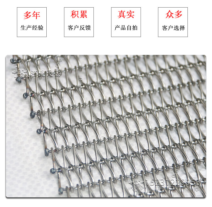 Crimped rod type: focused the weaved metal wire mesh's advantages, because the deeper of the crimped rod, every of the spiral wire gets correct postion, so this type can reduce the conveyor belts's variant and extension.