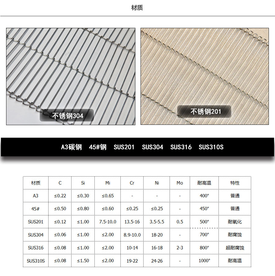 不銹鋼網(wǎng)帶屬于非標(biāo)準(zhǔn)件,我們將根據(jù)你提供的規(guī)格長(zhǎng)寬,材質(zhì),不銹鋼絲線徑,編制結(jié)構(gòu)尺寸,支軸直徑,支軸間距,鏈條型號(hào)等數(shù)據(jù)制作.