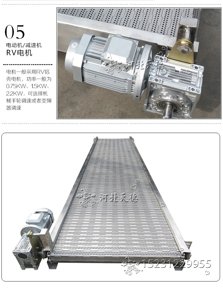 鏈板輸送機有兩大領域使用,那就是工業輸送和食品業輸送,這樣就有了鋼制鏈板輸送機和不銹鋼鏈板輸送機之分。這兩大系列中鏈板輸送機型號分烘干型、清洗型、自然輸送型、加重輸送型,這些型號各自對應著食品、藥材、金屬件的烘干,蔬菜、金屬件的清洗,各種產品的組裝、包裝流水線。